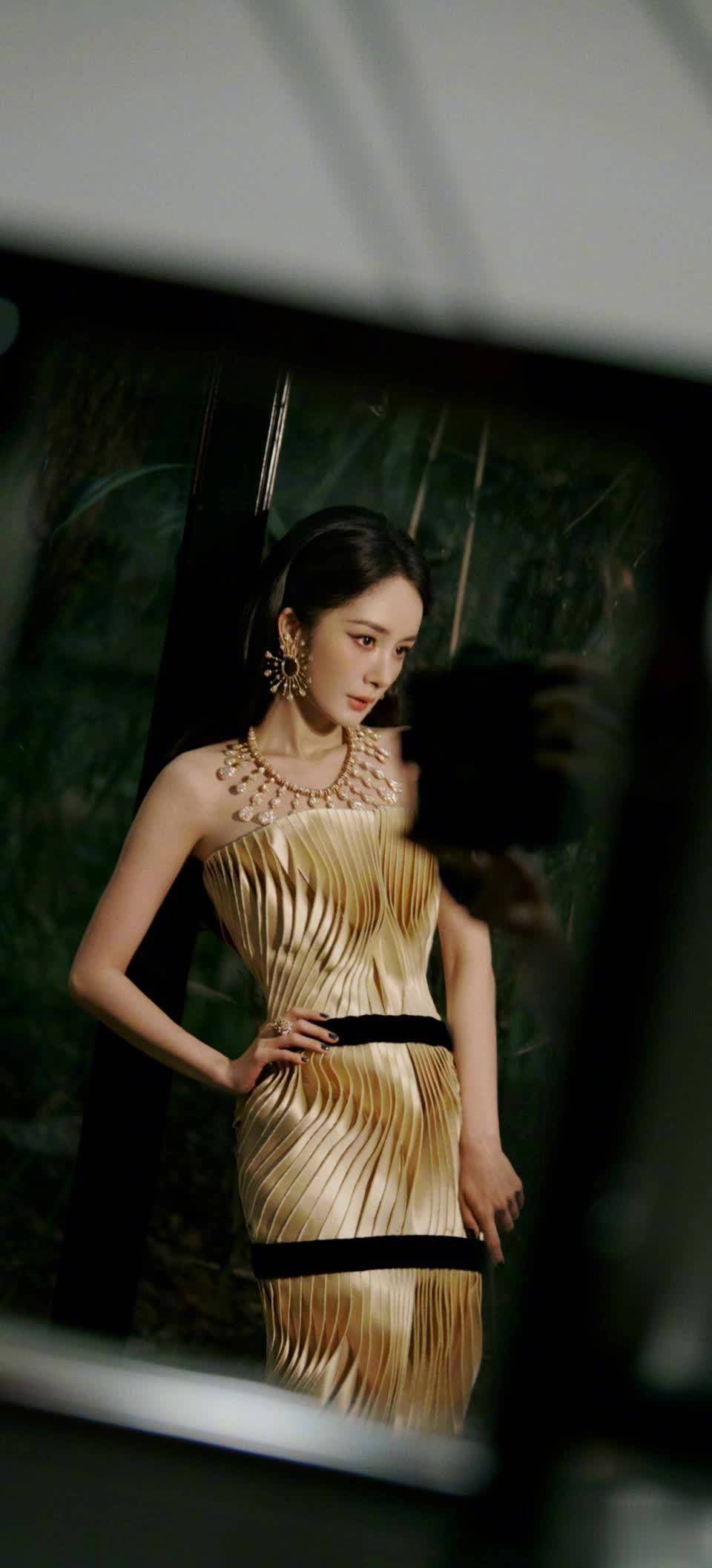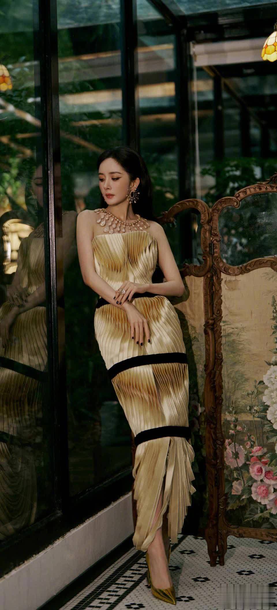 第一张照片中,杨幂以镜面倒影的方式呈现,金色礼服搭配重工珠宝,瞬间把 “贵气感” 拉满。她的骨相美在镜头下尤为突出,流畅的下颌线、精致的眉眼,即使是侧颜也经得起特写考验。二、丛林中的 “时尚精灵”:身材与穿搭的极致融合