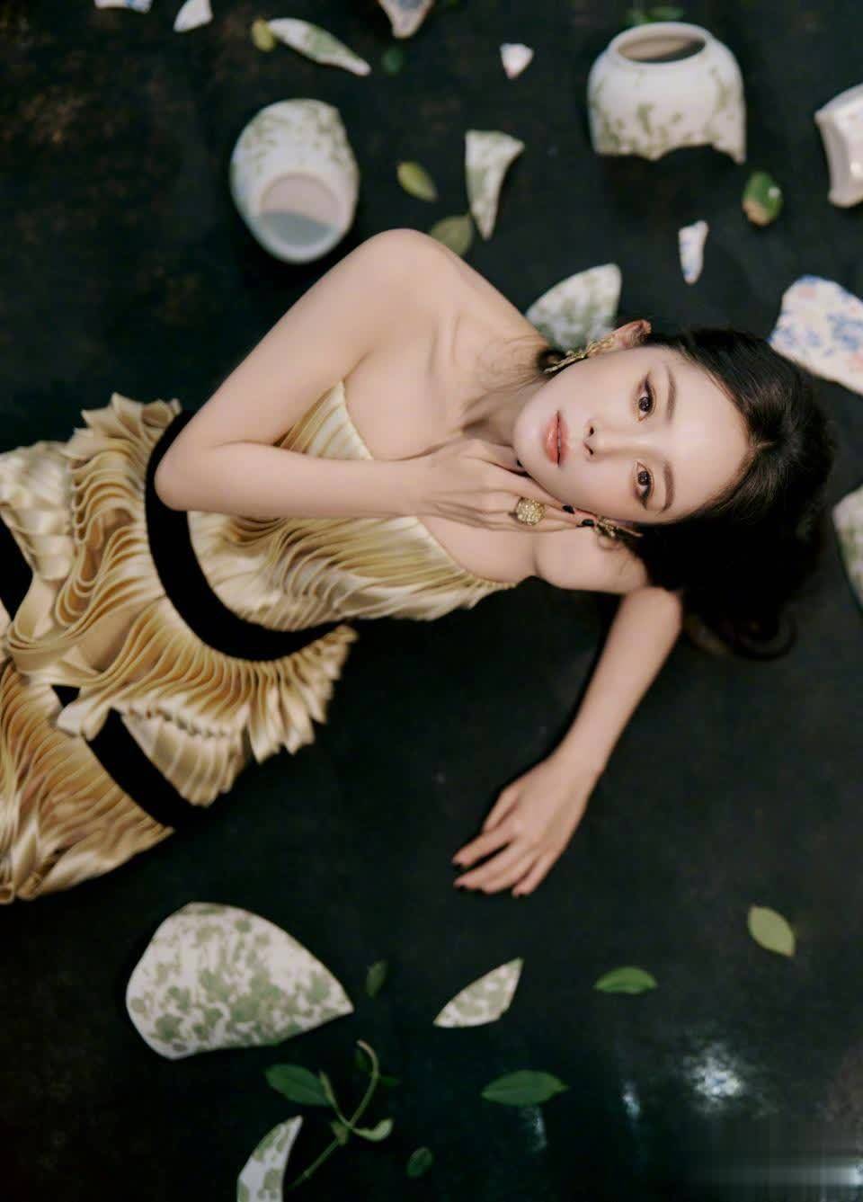 俯视角度拍摄,杨幂身处陶瓷碎片之间,金色礼服的褶皱在视觉上形成层次。这种 “破碎与华丽共存” 的画面,像极了她这些年的成长轨迹—— 一路打破质疑,把 “争议” 变成 “成就”,最终活成了自己的女王。从早期被说 “穿搭用力”,到如今成为时尚圈的 “标杆人物”,杨幂用无数造型证明:时尚从来不是模仿,而是找到自己的风格,并把它做到极致。结语:杨幂的时尚 “封神”,从来不是偶然